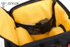 Platztechnisch überrascht die KATA Access-16 PL. Neben einer Canon EOS 50D mit Batteriegriff und angesetztem 70-200 mm Teleobjektiv kann in den beiden Seitentaschen jeweils ein Objektiv verstaut werden. Im inneren Netzfach lassen sich kleinere Zubehörteile, wie Akkus und Speicherkarten verstauen. Für den Transport oder die Aufbewahrung einer kompletten Ausrüstung mit Ladegeräten und viel Zubehör ist die Access-16 PL zwar nicht geeignet, aber auch nicht wirklich gedacht. Vielmehr ist sie eine Tasche für anspruchsvolle Fotografen, die mit einer sinnvoll zusammengestellten Ausrüstung auf Tour gehen wollen.